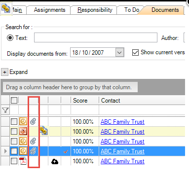 A new column has been added to the Search Results display. New documents with attachments added after installing 5.4.25 will now have an attachment icon. Existing documents in Document Manager will not display this icon unless they are checked-in again.