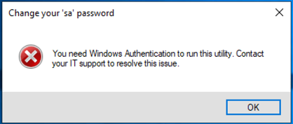 Failed to update the sa password in SQL server.