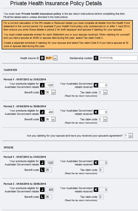 IMPORTANT: When entering the premiums paid you will need to enter exactly what appears in the Private Health Insurer's Annual Statement. If you have any queries on what values to enter into the tax return, you will need to contact the Private Health Insurer directly.