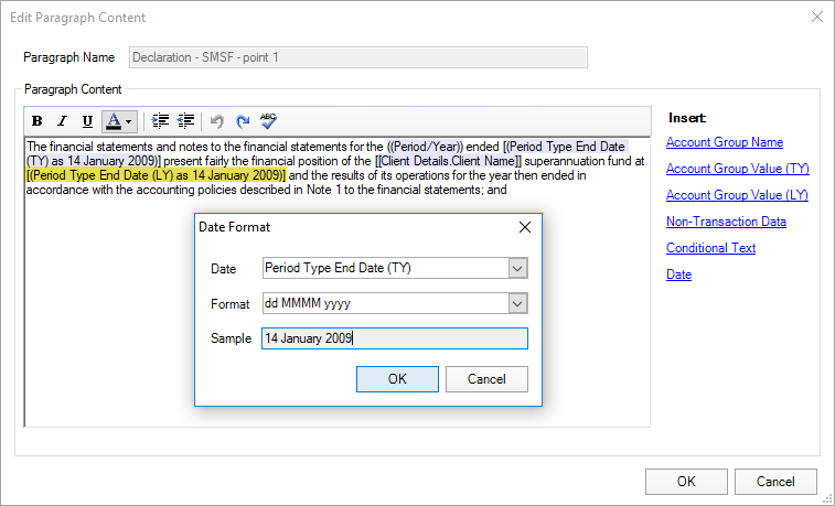 As a workaround, edit the paragraph and change the date format to Period Type End Date (TY).