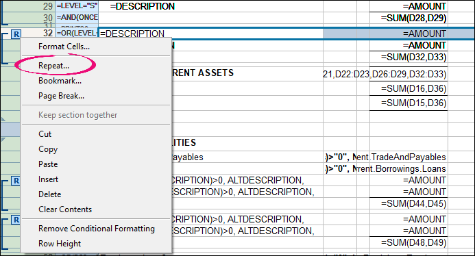 Double-click the format you wish to make the changes to. For example, Balance Sheet - Full compliance, P&L Trading, Management Rental Statement Multiple etc. The contents of the format appear in the right-hand pane.