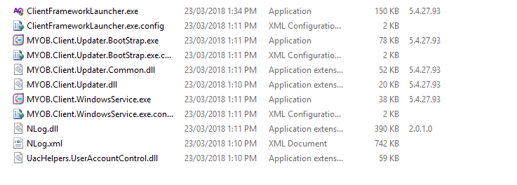 | 64 bit workstation | C:\Program Files (x86)\MYOB\WorkstationAutoUpdate |