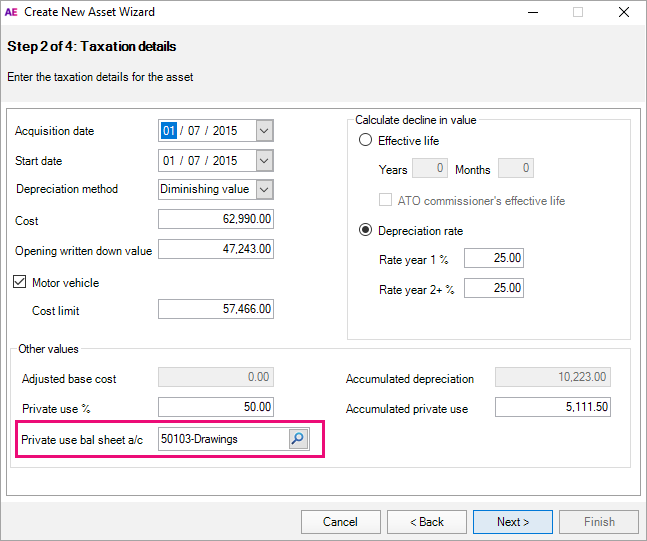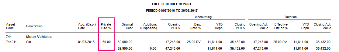 any assets with a Private Use amount has a private use balance sheet account specified in the individual Asset details.