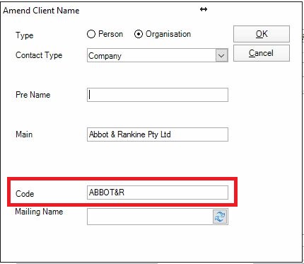 a user AE may not be able to amend a client code depending on the security settings. Whilst in AO, amending a client code will be enabled for Administration users only.