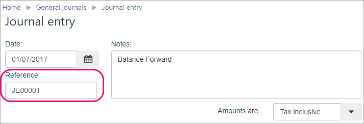 - Edit any existing General journals in Essentials to ensure the Reference field does not contain alphanumeric characters only and do not have any spaces.