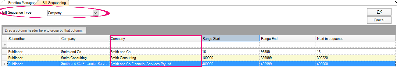 The following instructions will use the example of the Bill Sequence Type of Company.