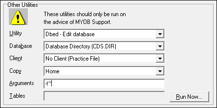 Utility: Dbed - Edit Database Database: Database Directory (CDS.DIR) Client: No client (Practice file) Copy: Home Arguments: -t~