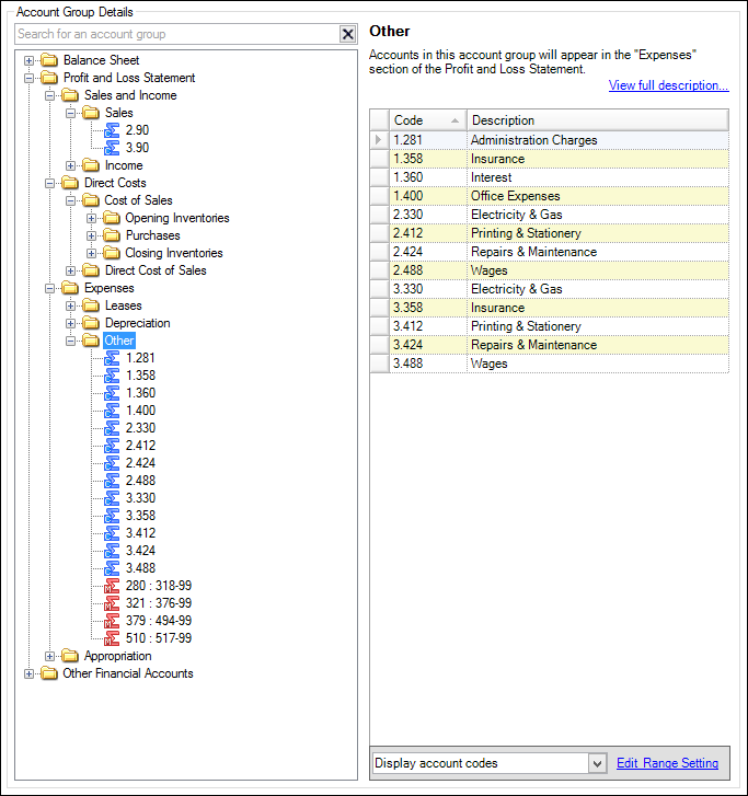 Allocate the relevant account code or range to the appropriate Account Group. The account range appears in the nominated account group folder.