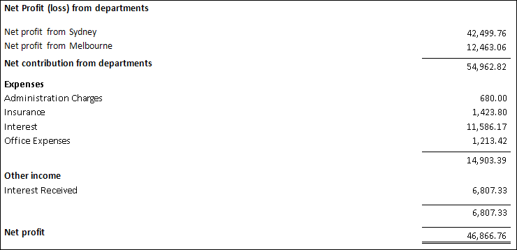 all profit and loss accounts with prefix beginning with 2 will relate to Department 1 and appear in Department 1's Department Income statement.