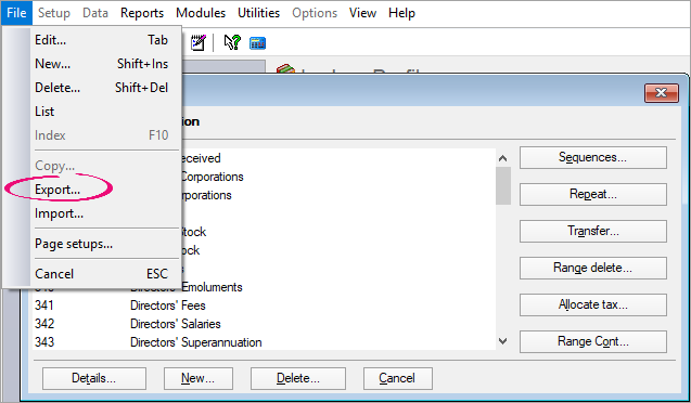 Select By Range and enter an account code in the From: and To: fields to export all account codes within the specified range, or
