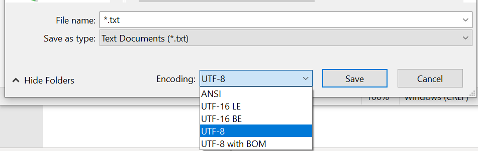 The export file may have an Encoding of UTF-8 with BOM, set as a default. This will prevent the file being imported into MAS. To correct this, change the Encoding to ANSI then save this change.