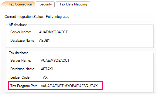 Note the Tax Program Path. For example: X:\MYOBAO\AOSQL\Tax\