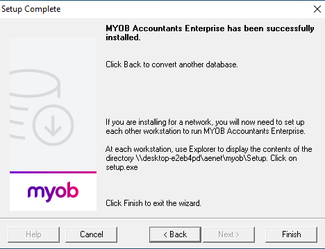 Following the successful migration of MYOB AE to the new server, there are a couple of things that need to be completed post install: