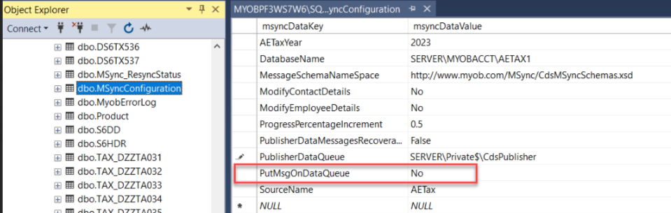 In the AETAX database, go to the table dbo.MsyncConfiguration.