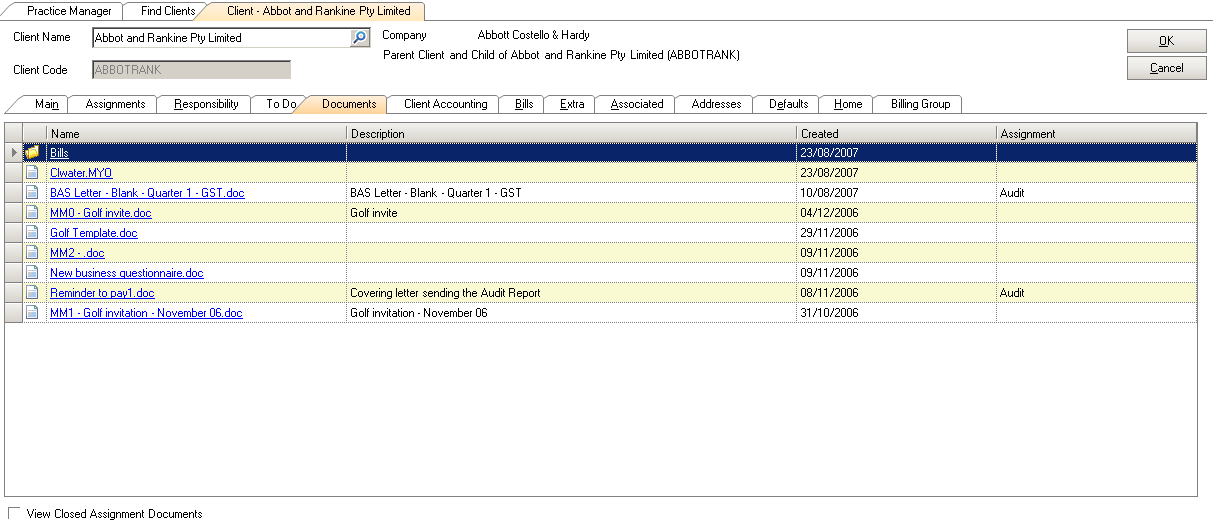 Open the client record that you wish to change the documents folder. The client record opens.
