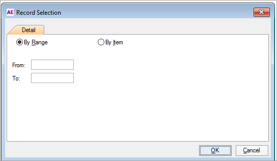 In the Record Selection window, select By Range.