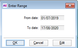 Select Edit and enter a date range. We recommend the date range to be when you first installed tax 2020 (for example, 31/07/2019) till the date you're performing these steps.