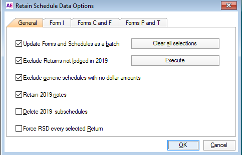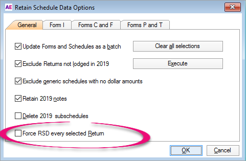 In the Retain Schedule Data Options window, select Force RSD for every selected Return.