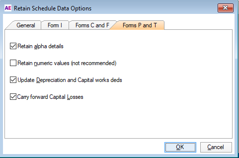 Go to Form P and T tab and make sure the following options are selected: