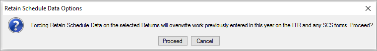 Select Proceed in the Retain Schedule Data Options window.