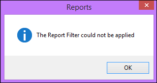In MYOB AO version 5.4.28, when using Filter 'Is Null' or 'Is Not Null' in the Date Closed field shows a message ' The Report Filter could not be applied'.