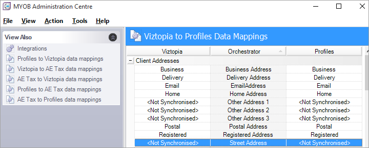 In Client Addresses, ensure the label in the Viztopia column reflects the changes made in To check the address types above.
