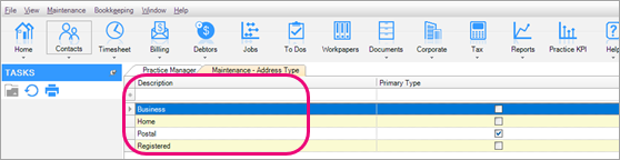 For addresses to flow correctly between AE/AO, Contacts and Corporate admin, you'll need to have the following Address Types configured in AE/AO.