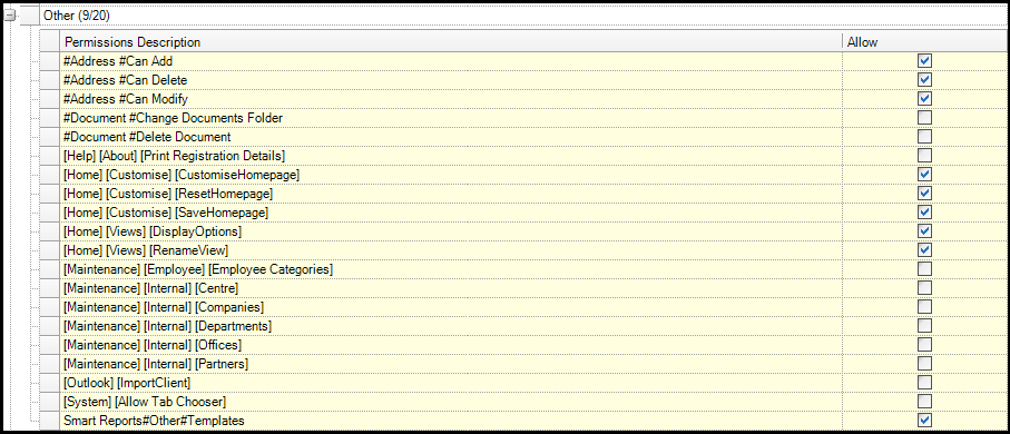 Tick to allow, or untick to disallow employees in the selected group permission to perform the following tasks: