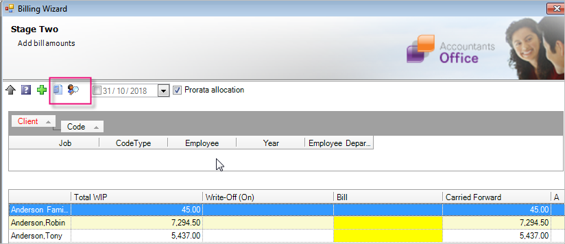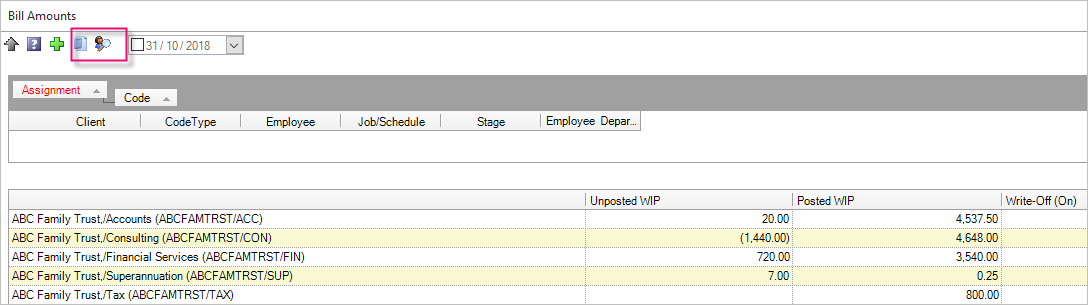When you are unable to transfer the wip, you can include the wip in a bill by using the Add assignment or Add assignments from client (AE) or Add Job or Add job from client (AO) in Stage 2 of the Billing Wizard. This allows you to pull in the wip from the specific Client assignment/job and include one or all entries from this other client in your bill.