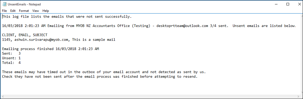 If one or more emails are not sent successfully, a log file will be available to see which emails were not sent.