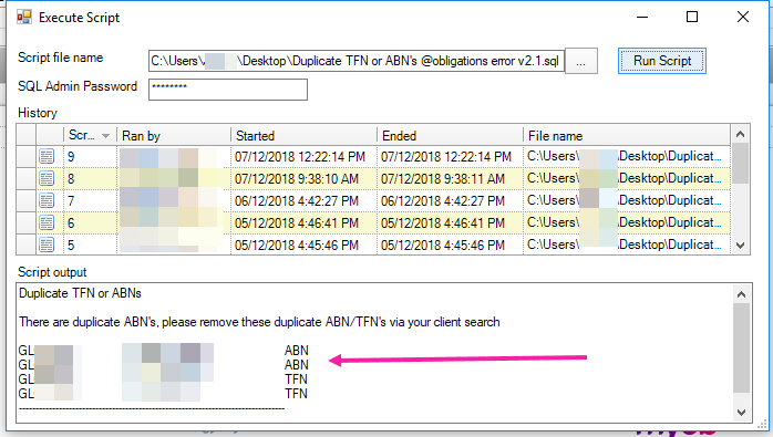 2. Ensure no ABN, TFN duplicates in main, extras, addresses tabs of taxpayer affected