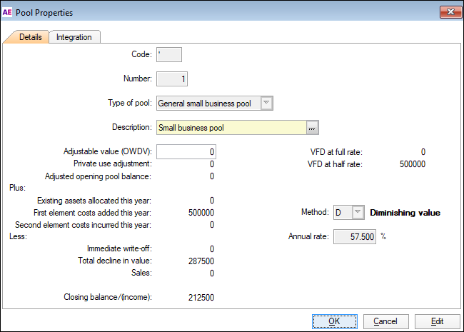 • if the asset cost is less than $150,000, it will be an instant write-off when adding to the pool.