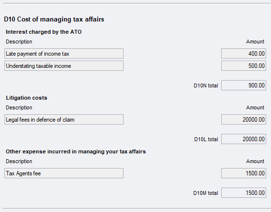 From 1 July 2018, complete and lodge a deductions schedule (DDCTNS) with your return if you've claimed a deduction at any of items D1–D10 and D12–D15.