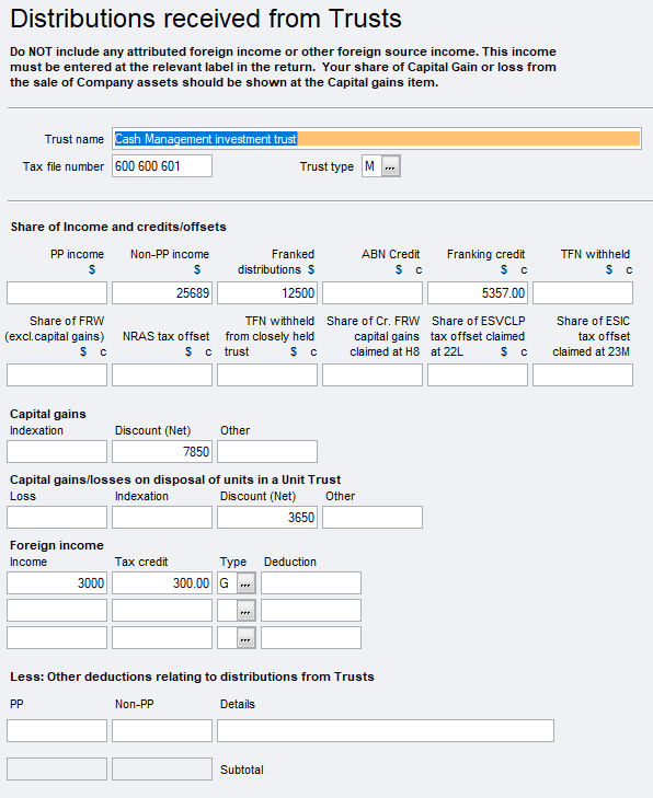 - If you don't act for the distributing trust, create a dit to record distributions received from other trusts.