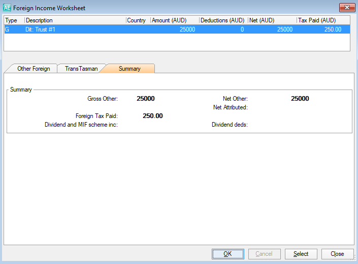 We've provided a Quick access link in the dit to the Foreign income worksheet (for).