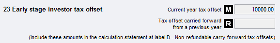In the following example, both checkboxes are ticked and the taxpayer can claim 20% of the investment amount as a tax offset.