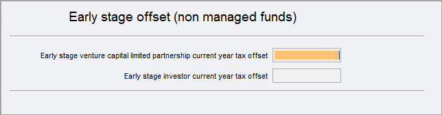 Press enter at Early stage venture capital limited partnership current tax offset label. The Early stage venture capital limited partnership window opens.