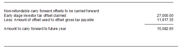 Click the Worksheet button and enter the details of the ESVCLP acquisition. Enter any excess offset carried forward from the previous year, adjusted in accordance with Div 65 of the ITAA 1997 for the effects of any net exempt income (foreign or Australian).