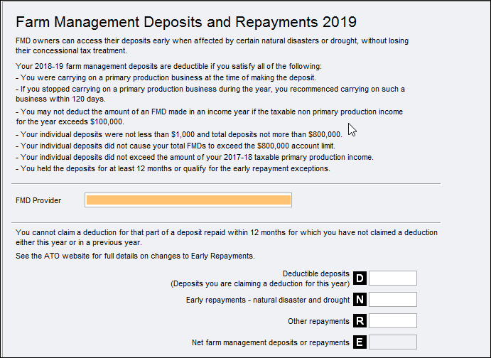 Farm Management Deposits and Repayments (fmd)