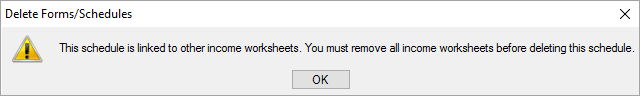 If the taxpayer declares income in any of the items shown below, you must complete the relevant worksheet. When you create any of the worksheets below, the INCDTLS schedule is automatically created.