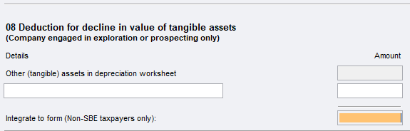 If you don't use the depreciation worksheet (d) there is a set of open fields for you to enter values or an adjustment value, well pass those values to the relevant labels in the main return.