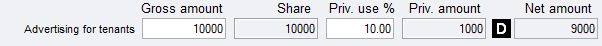 Pte use %If you've defaulted a PU %, we close this column of fields to edit. Otherwise, enter the PU % for the relevant expense.