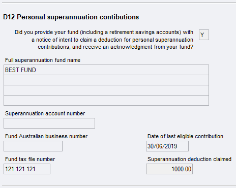 Item D12 - Personal Superannuation Contributions