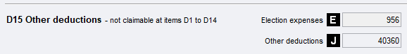 Other Deductions cover expenses that the taxpayer may be entitled to claim at this item and which have not been claimed already at D1 to D14. Each amount that is entered must be accompanied by a description.