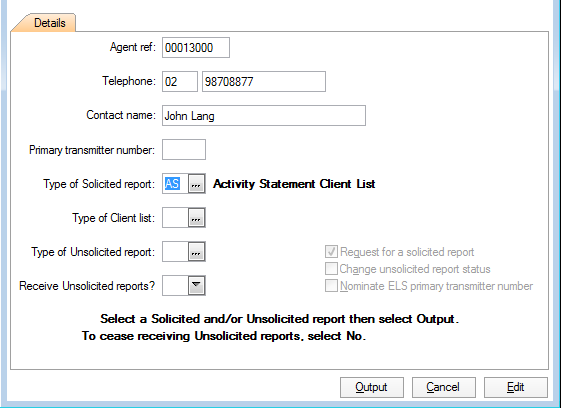 This function prepares a Form RR requesting one solicited report. The default report is set as the ATO Activity Statement Client List (AS). This report identifies your clients who need to have their BAS or IAS payer details updated on the Return Properties General tab. To do this: