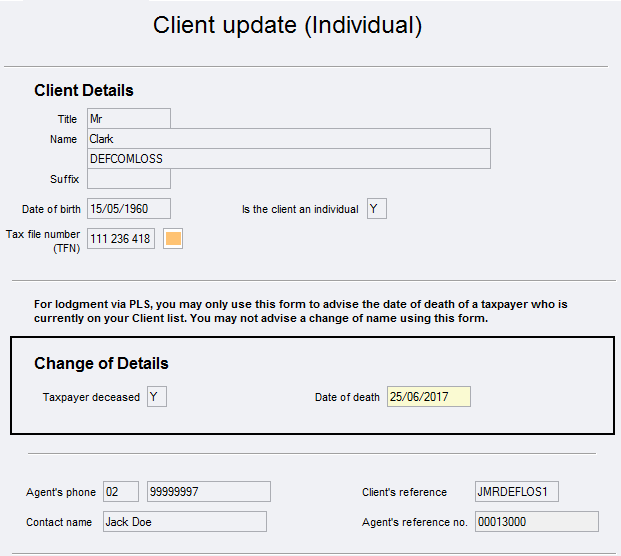 The CUDTL changes apply solely to income tax clients and the only detail you can change for the taxpayer for lodgment via PLS is advising the date of death of a taxpayer currently on your Income Tax client list.