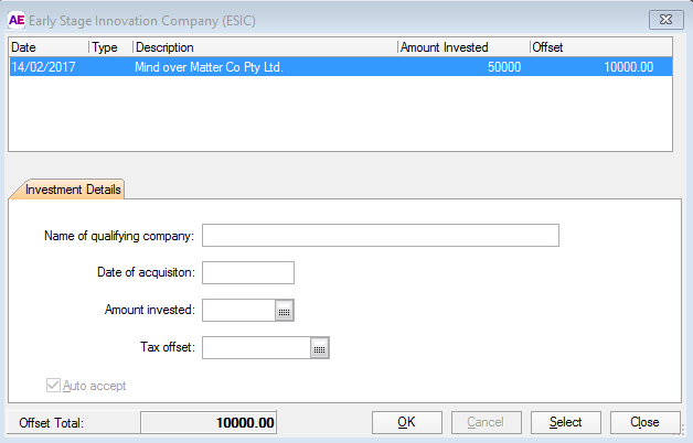 The Evidence the company qualifies as ESIC obtainedcheckbox is mandatory and the Sophisticated investor checkbox must be ticked if an offset is to be allowed. You must only tick the Sophisticated investor checkbox if the taxpayer has passed the sophisticated investor test for at least one of the transactions. The Sophisticated investor test does not apply if the company receives a distribution of ESIC ax offset from a partnership or trust.