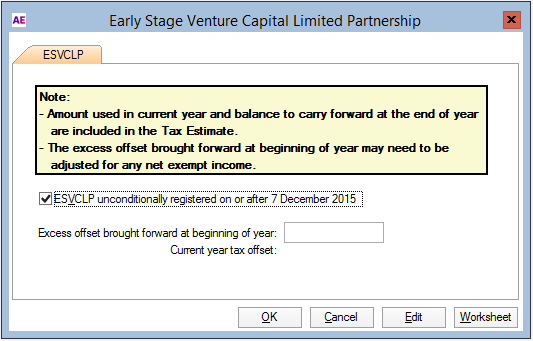 Early stage venture capital limited partnership tax offset worksheet (esv) Company 2023