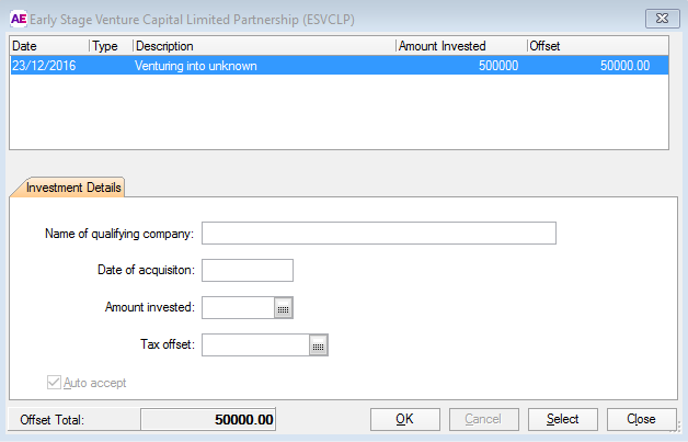 To record any share of ESCVLP tax offset distributed to the company from a partnership or trust, you must enter these details in the: