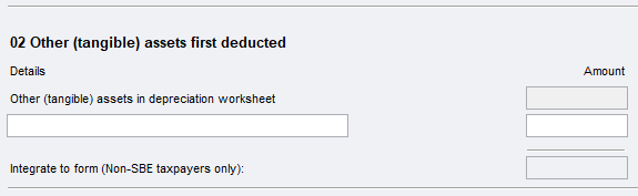 If you don't use the depreciation worksheet (d) there is a set of open fields for you to enter values or an adjustment value, well pass those values to the relevant labels in the main return.